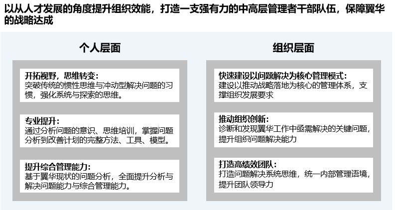 傳統的此類(lèi)課程側重于定性的描述策略,此次課程吸收國際先進(jìn)企業(yè)經(jīng)驗,融合本土企業(yè)實(shí)踐,著(zhù)重從問(wèn)題分析的思維方式及方法入手,依靠結構化的方法和可視化工具,在此基礎上全面解決問(wèn)題,提升企業(yè)績(jì)效,不斷改善管理效能。